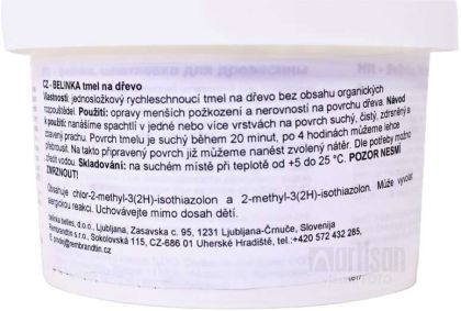 Belinka Tmel na dřevo slouží k lokálním opravám a tmelení (vyplnění) vad dřeva. Efektivně vyrovnává povrch a vyplňuje vady do 1 mm. Odstín tmelu vybíráme podle barvy tmeleného dřeva, zvláště, pokud na tmelené dřevo budou aplikovány lazurové nátěry.