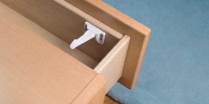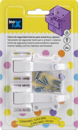 Vnitřní bezpečnostní uzávěr pro skříňky a zásuvky. Upevnění pomocí šroubů (součástí balení).