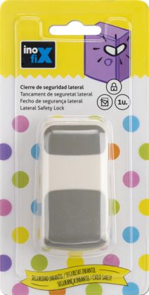 Boční bezpečnostní uzávěr se samolepicí fixaci. Produkt má dva knoflíky pro otevírání uzávěru, proto je otvírání pro děti ještě obtížnější. Uzávěr je vyroben s protiskluzového materiálu, aby se s ním lépe manipulovalo.