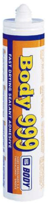 Body 999 je těsnící hmota na bázi kaučuku a je vhodná pro lepení a těsnění kovových částí, pro těsnění spojů a spár karosérie vozidla a také pro vyplňování rýh. Je také vhodná pro vnitřní části karosérie, které nejsou přímo vystavené UV záření. Nanáší se štětcem, špachtlí anebo výtlačnou pistolí. Schne rychle, nepraská a zůstává elastická a rozměrově stálá. Dodáváno včetně aplikační špičky.
