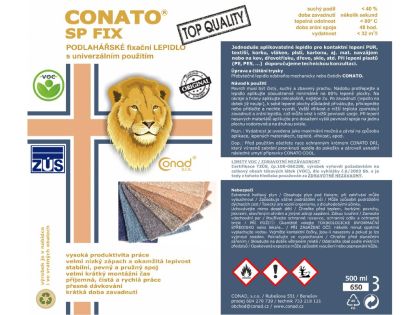Výhody lepidla CONATO SP fix zdravotní nezávadnost spoje, stabilní a pružný spoj který se nepropadá, nízký zápach, velmi krátký montážní čas, vysoká lepivost, široký rozsah volitelné šířky nánosu, velmi krátká doba zavadnutí (čekací doba pro spojení), velmi nízká spotřeba.