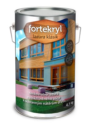 FORTEKRYL lazura KLASIK je vodou ředitelná tenkovrstvá lazura na bázi emulze modifikovaného lněného oleje.