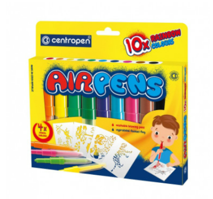 Foukací fixy na papír. Sada obsahuje 10 barevných odstínů foukacích fixů, 4 šablony a návod. Použité inkousty na vodní bázi jsou snadno vypratelné a smývatelné a zcela zdravotně nezávadné.
