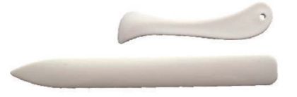 Knihařská kost z tuhého, ale jemně ohebného plastu. Sestává se ze dvou kusů o velikostech uvedených níže. Je vhodná pro přehýbání a uhlazování papíru či látky. větší kost délky: 20cm menší kost délky: 12cm