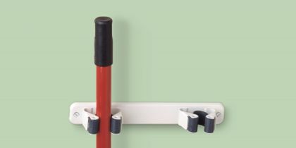 Ideální věšák pro organizaci úklidového nářadí jako jsou košťata, mopy atd.