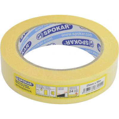 Spokar papírová zakrývací páska do 60 °C Mírně krepový papír, střední lepivost, pro vnitřní použití do 60 °C, maximální doba nalepení 24 hod.
