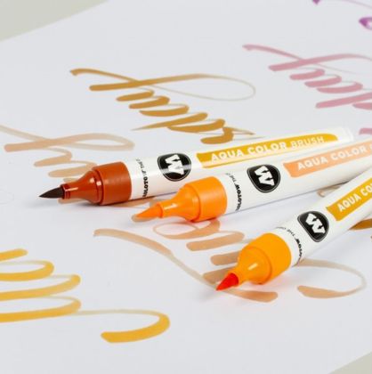 Molotow AQUA COLOR BRUSH je popisovač s rozměrově stabilním, elastickým štětcovým hrotem sjednocuje trvanlivost a užitečnost, speciálně pro skupinu zákazníků jako studenti a děti, kdy můžou mít větší spotřebu. Tento fix na vláknovém principu (není pumpovací, barva se vytahuje hrotem, který je přímo vložený do vláknového vnitřku fixy) nabízí precizní a komfortní aplikaci inkoustu, která je perfektní pro kreslení, vybarvování, skicování a také pro moderní kreativní aplikace jako barevné letteringy v kombinaci s akvarelovou technikou a je k dispozici ve 36 odstínech. Vodní inkoust na bázi potravinářských barviv nezapáchá, a tak se bez problémů dá použít v interiérech bez možných bolestí hlavy.