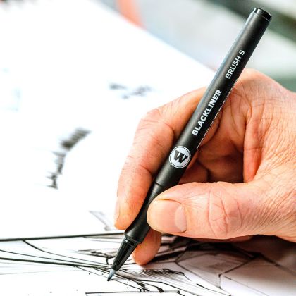 Nový BLACKLINER Brush S má velice pružný plastový hrot, který se dá překvapivě nazvat takovým štětcem. Je velice vhodný pro agilní, dynamické a precizní linky - perfektní pro kresby v komiksovém stylu nebo detailní graffiti skeče.