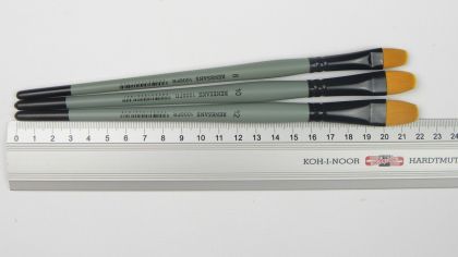 Štětiny ze zlatého vlákna mají vysokou odolnost a jsou spíše tužší. Krátká rukojeť zajistí komfortní práci i pro delší tahy a nanášení větších povrchů. Štětec je vhodný především pro akrylové, temperové a olejové barvy, je možné použít i na další techniky. Pro svůj výhodný poměr kvalita/cena doporučujeme také pro nanášení různých laků apod.