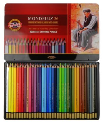 Akvarelové pastelky vyrobené tradiční českou značkou Koh-i-noor s kvalitním silně pigmentovaným jádrem o průměru 3,8 mm. Pastelky mají špičkovou povrchovou úpravu, máčený knoflík a zlaté značení. Vyznačují se sytou barevnou stopou s možností kresbu dále upravovat rozmýváním pomocí štětce, případně houbičky. Jsou vhodné pro umělecké a hobby kreslení.