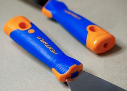 Škrabka z nerezové oceli pro větší odolnost a trvanlivost při škrabacích pracích. Navržena tak, aby vydržela ty nejnáročnější úkoly. Má leštěnou pevnou čepel a je vyrobena z evropské nerezové oceli o tloušťce 1,8 mm. Další výhodou je ergonomická elastomerová rukojeť.