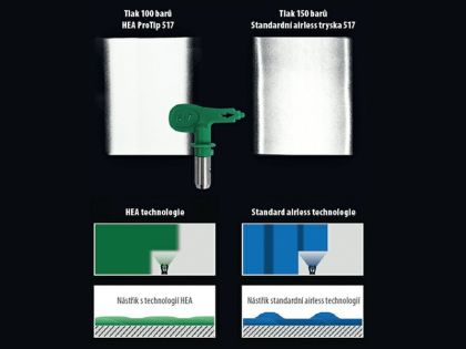 Možnost používání trysek řady Wagner HEA ProTip se sníženým provozním tlakem a prašností.