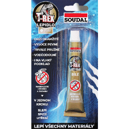 T-REX® ČIRÝ je unikátní 100% čiré lepidlo a tmel v jednom. Díky použití technologie SMX® firmy Soudal je nejuniverzálnějším produktem s nejširším použitím na trhu. Svými vlastnostmi předčí většinu tmelů a lepidel. Jako silikon je stejně odolný proti UV záření a stejně pružný, jako akrylátový tmel je přetíratelný většinou nátěrů a jako polyuretanový tmel má silné lepicí účinky. Je vhodný pro vnitřní i venkovní použití a má výbornou přilnavost k většině stavebních materiálů. Neobsahuje rozpouštědla, kyseliny ani izokyanáty. Netrácí své vlastnosti ani v prostředí se zvýšenou vlhkostí, je vhodný pro sanitární účely. Velmi rychle tuhne a vytváří vysoce pevný trvale pružný a neviditelný spoj.