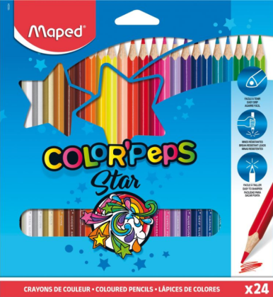 Ergonomické pastelky Maped ColorPeps mají trojhranné tělo pro snadný a pohodlný úchop, extra odolnou tuhu a jasné barvy. Tloušťka tuhy je 3,2 mm.